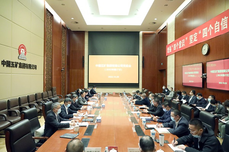 翁祖亮强调,新时代十年的伟大变革充分表明,党和国家事业取得历史性成就、发生历史性变革,根本在于有习近平总书记作为党中央的核心、全党的核心掌舵领航,在于有习近平新时代中国特色社会主义思想科学指引。习近平同志“三个全票”再次当选中央委员会总书记,充分反映了全党的高度共识、共同心愿和强烈意志,充分体现了保持党的领导核心和指导思想长期稳定的根本要求,充分表明了“两个确立”已经深深写在了新时代的伟大征程上、写在了中华大地上、写在了全党全军全国各族人民的心坎上。作为国有企业党员领导干部,要不断增强“四个意识”、坚定“四个自信”、做到“两个维护”,坚决拥护新一届党中央领导集体,自觉尊崇党章、严格遵守党章,做到政治上绝对忠诚;要充分认识拥有坚强的领导核心、科学的理论指导是成熟的马克思主义政党的重要标志,是我们党创造百年辉煌、成就千秋伟业的成功密码,做到思想上高度认同;要深切体会习近平总书记作为党的核心、人民领袖、军队统帅的崇高威望和人格魅力,切身感悟习近平新时代中国特色社会主义思想的真理伟力和人民情怀,做到情感上衷心爱戴;要深入推进习近平总书记重要指示批示精神再学习再落实再提升,坚决扛起保障国家金属矿产资源供应与安全的责任,做到行动上紧紧跟随;要坚决履行企业的政治责任、经济责任和社会责任,牢记初心使命,做强做优做大,加快建设世界一流企业,扎实做好乡村振兴、生态环保、疫情防控、抢险救灾等各项工作,真正做到组织上自觉服从,切实把“两个维护”作为最根本的政治纪律和政治规矩,在思想上政治上行动上同以习近平同志为核心的党中央保持高度一致。