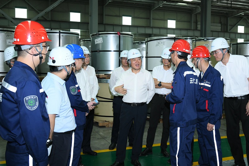 翁祖亮调研企业园区冷轧加工区并与一线干部职工交流